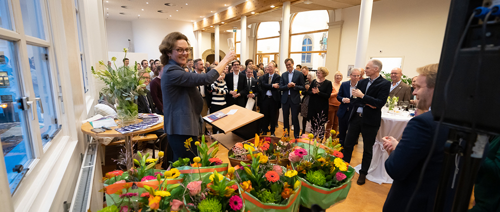 Decaan Joanne van der Leun bracht een toost uit op het nieuwe jaar