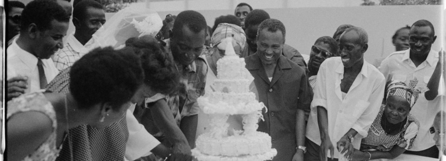 Foto: Taart bij de bruiloft van Chico Mendes (die de taart aansnijdt), de latere minister-president van Guinee-Bissau - najaar 1973. Credit: Roel Coutinho, CC BY-SA 4.0 via Wikimedia Commons