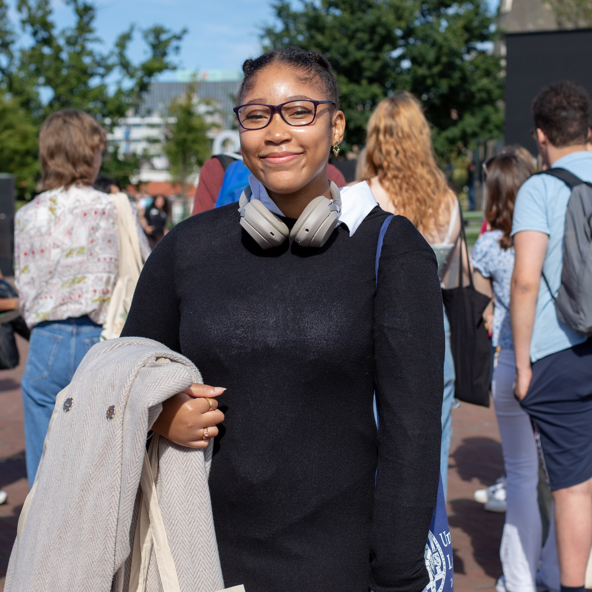 Haar groepje vindt het hilarisch dat ze geïnterviewd wordt: ‘You’re gonna get famous’. Maar de Engelssprekende Shaneeva uit Amsterdam wil best een paar vragen beantwoorden. South and Southeast Asian Studies gaat ze studeren in Leiden. ‘Ik ben altijd erg geïnteresseerd geweest in cultuur en geschiedenis van Azië en deze studie wordt in het Engels gegeven en ik vind dat erg belangrijk, ook voor mijn toekomst.’ Wonen blijft ze voorlopig nog in Amsterdam, maar Leiden bevalt wel. ‘Het is echt een leuke stad, maar echt op mezelf wonen? Ik zou het wel willen, maar ik weet niet of ik dat financieel red.’ De EL CID-feestjes zijn niet echt haar ding. ‘Misschien de karaoke en in ieder geval de kunst en handwerkactiviteiten, daar heb ik veel zin in.’
