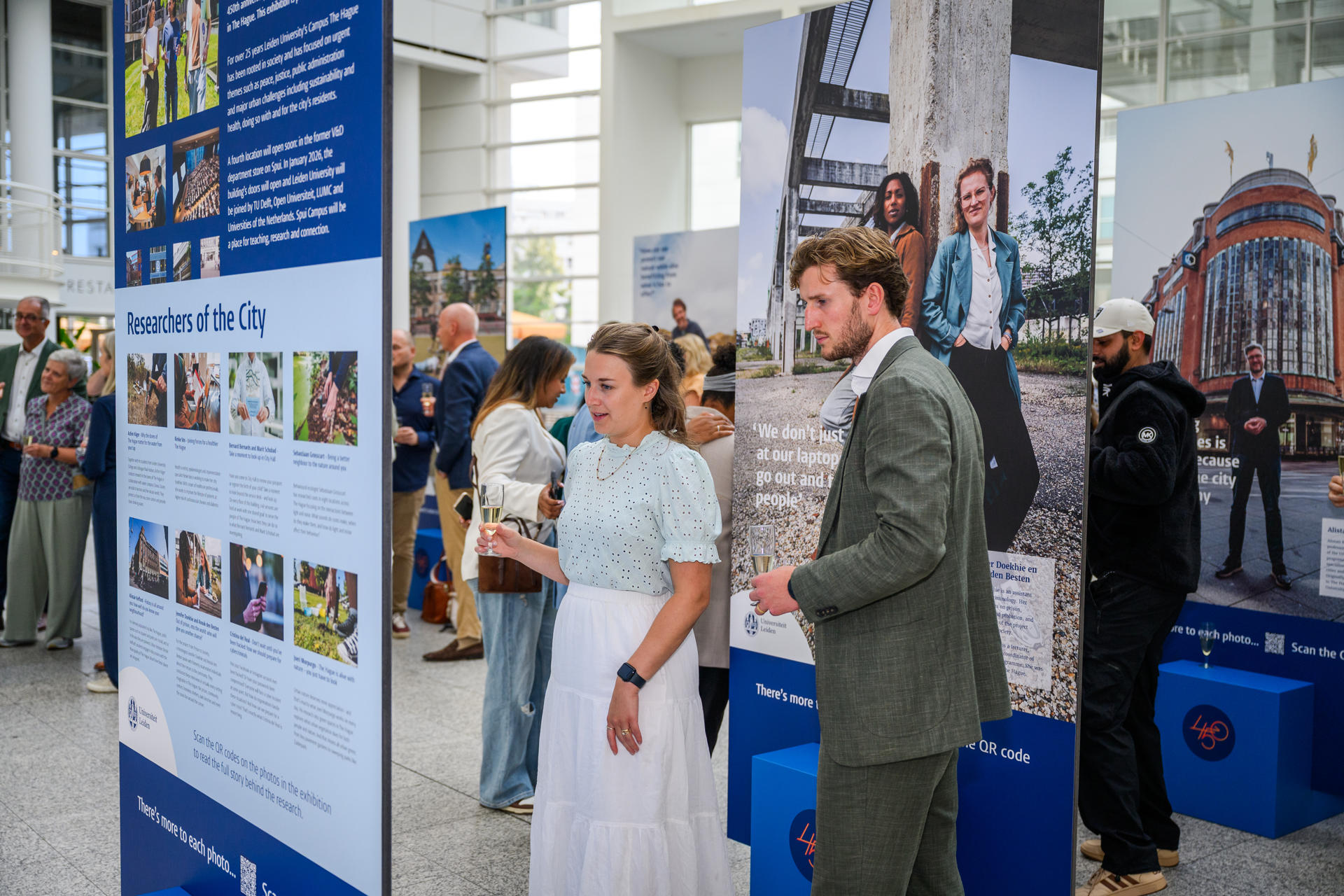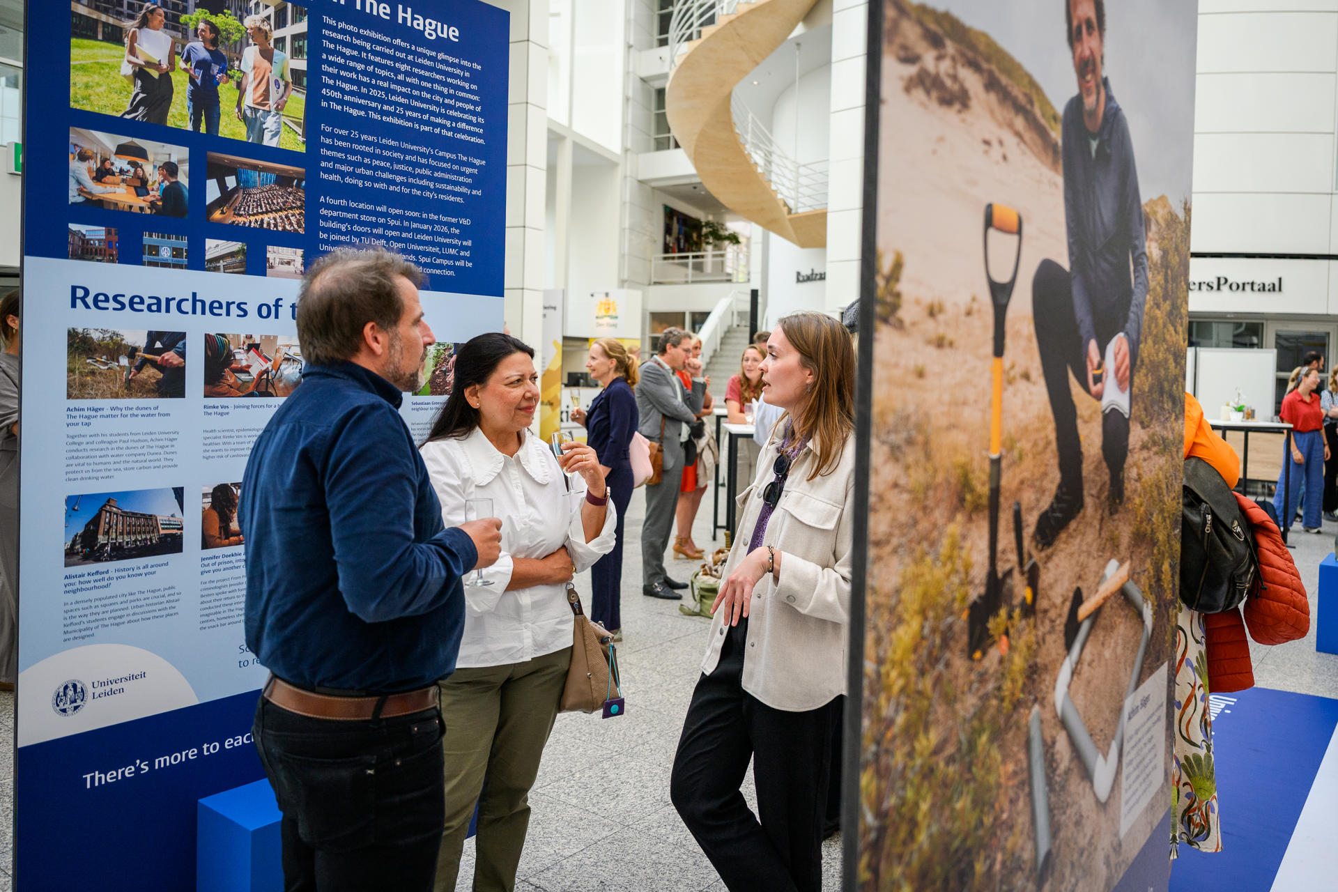 De Universiteit Leiden is al 25 jaar stevig geworteld in Den Haag. Dat werd zichtbaar tijdens de feestelijke bijeenkomst rondom de foto-expositie Universiteit Leiden in Den Haag: Onderzoekers van de stad.