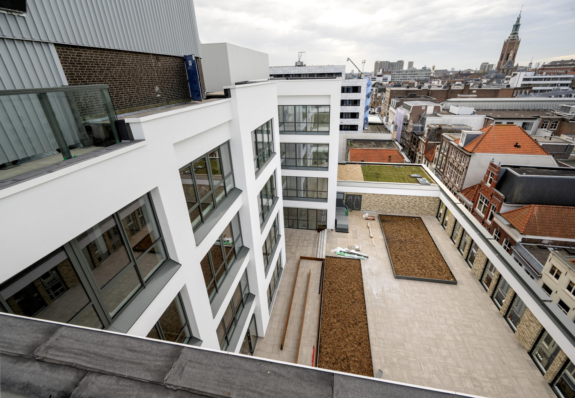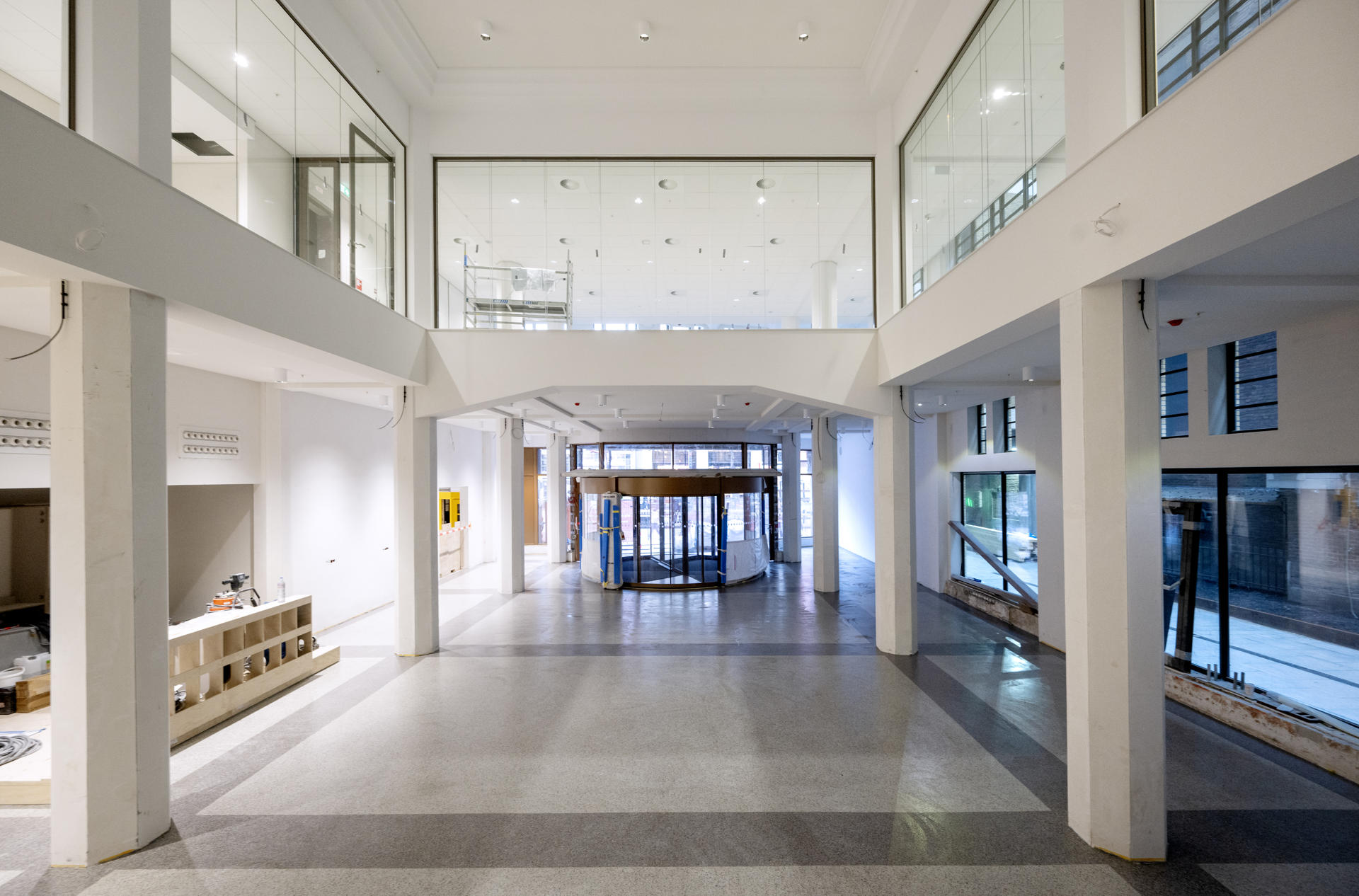 Intussen blijft het voormalige warenhuis overal voelbaar. Oorspronkelijke kolommen, plafonds en trappenhuizen met jaren dertig tegeltjes zijn behouden, waardoor een interessante mix ontstaat van historische charme en een stimulerende moderne omgeving. De komende maanden richten de verschillende partners zelf hun ruimtes verder in en krijgt het interieur steeds meer eigen karakter.